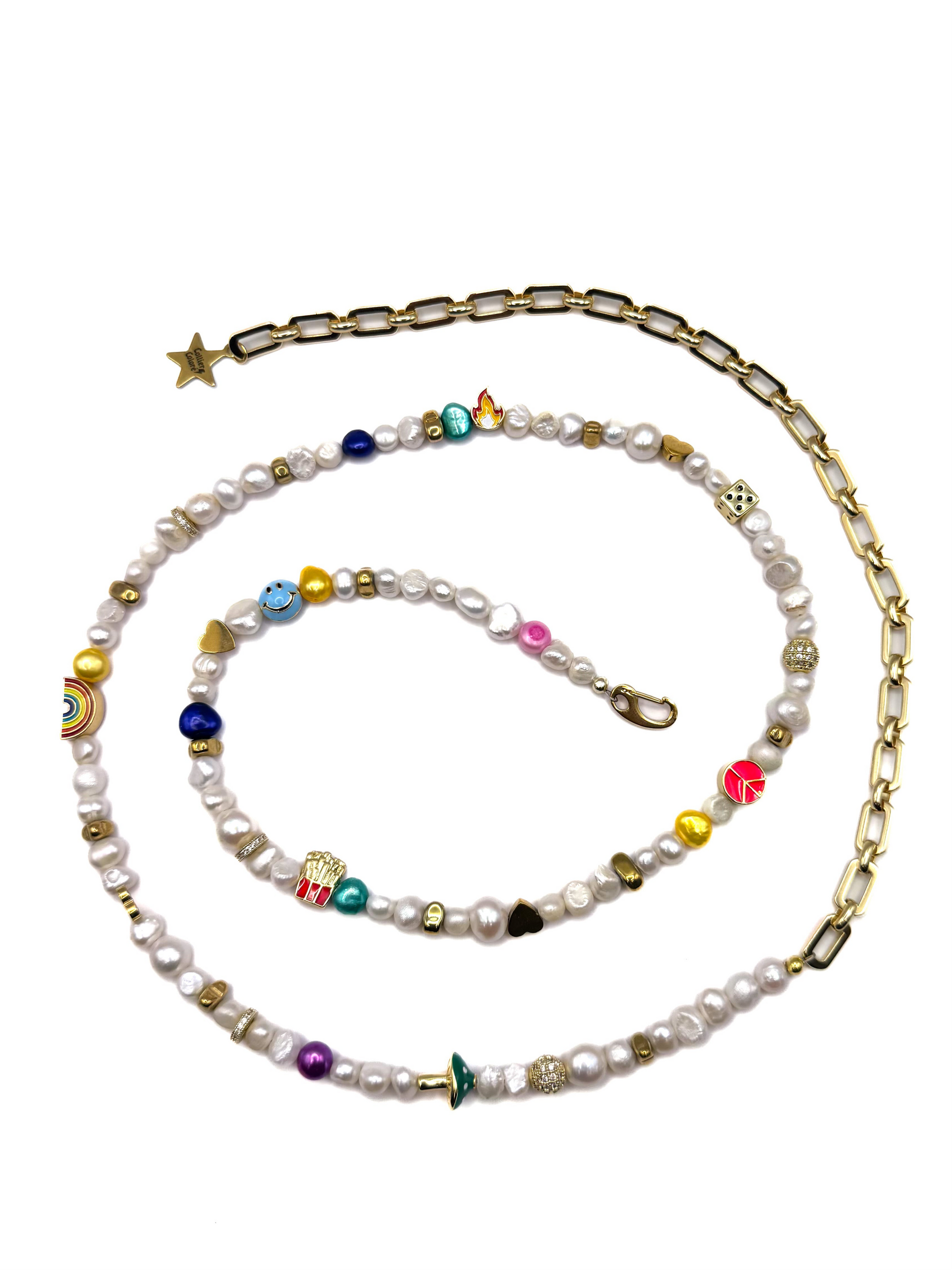 - Gold plated chain and closure. Color resistant.